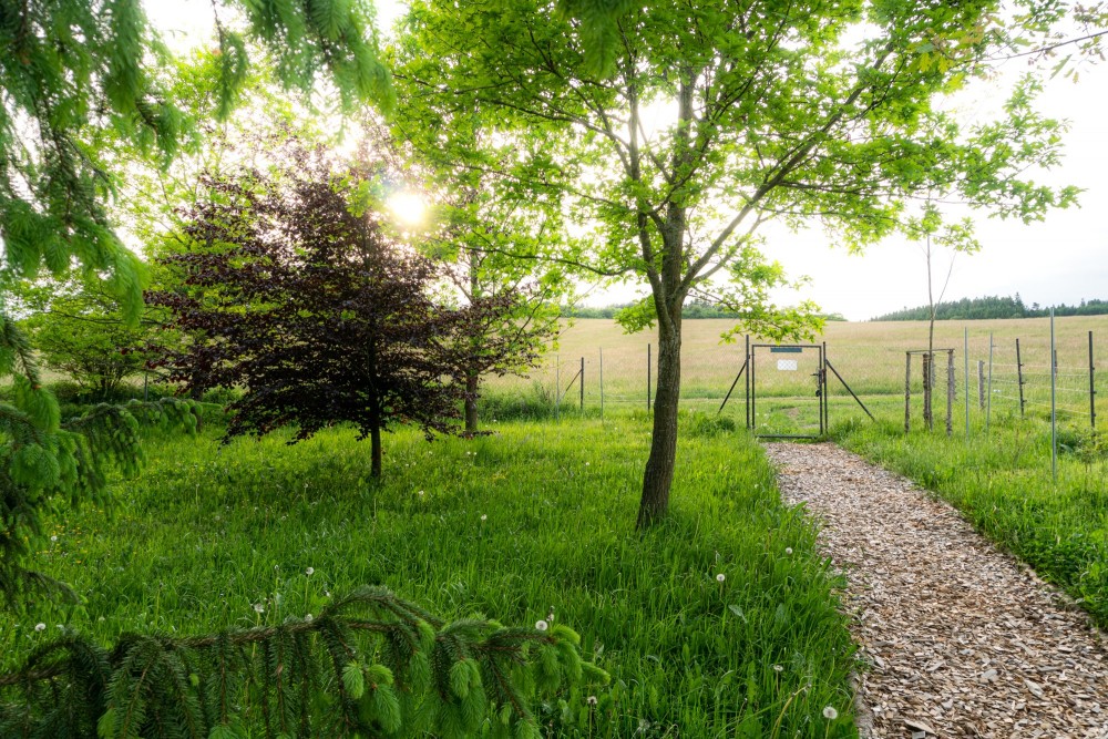 Oplocený lesík je během pobytu jen váš. V jeho srdci převládají vzrostlé smrky, ale okraje zdobí duby, buky, břízy i javory - stromy s duší a měnícími se barvami v rytmu ročních období. Les je domovem mnoha ptáků, kteří se stanou vašimi sousedy i raním budíkem. Je tu také dostatek místa pro uložení sportovního vybavení pro všechny roční období.