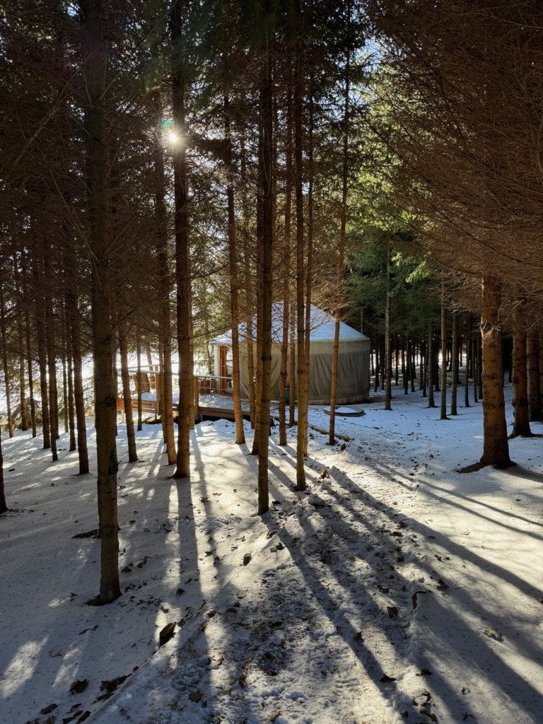 Interiér jurty je promyšlený do posledního detailu – útulný, originálně řešený a plně vybavený pro pohodlný pobyt v každém ročním období. Díky prosklené kopuli je prostor krásně světlý a otevřený, a přírodní materiály dodávají jurtě teplou, domáckou atmosféru.