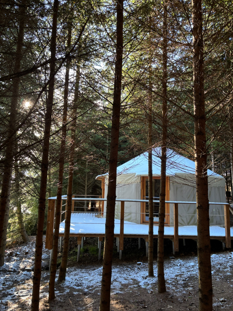 Interiér jurty je promyšlený do posledního detailu – útulný, originálně řešený a plně vybavený pro pohodlný pobyt v každém ročním období. Díky prosklené kopuli je prostor krásně světlý a otevřený, a přírodní materiály dodávají jurtě teplou, domáckou atmosféru.
